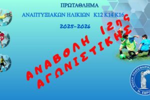 Κ16 ΕΠΣ Έβρου: Αποτελέσματα και βαθμολογία της 10ης αγωνιστικής (αναβληθείσα) για το Πρωτάθλημα Αναπτυξιακών Ηλικιών (2025-2026).